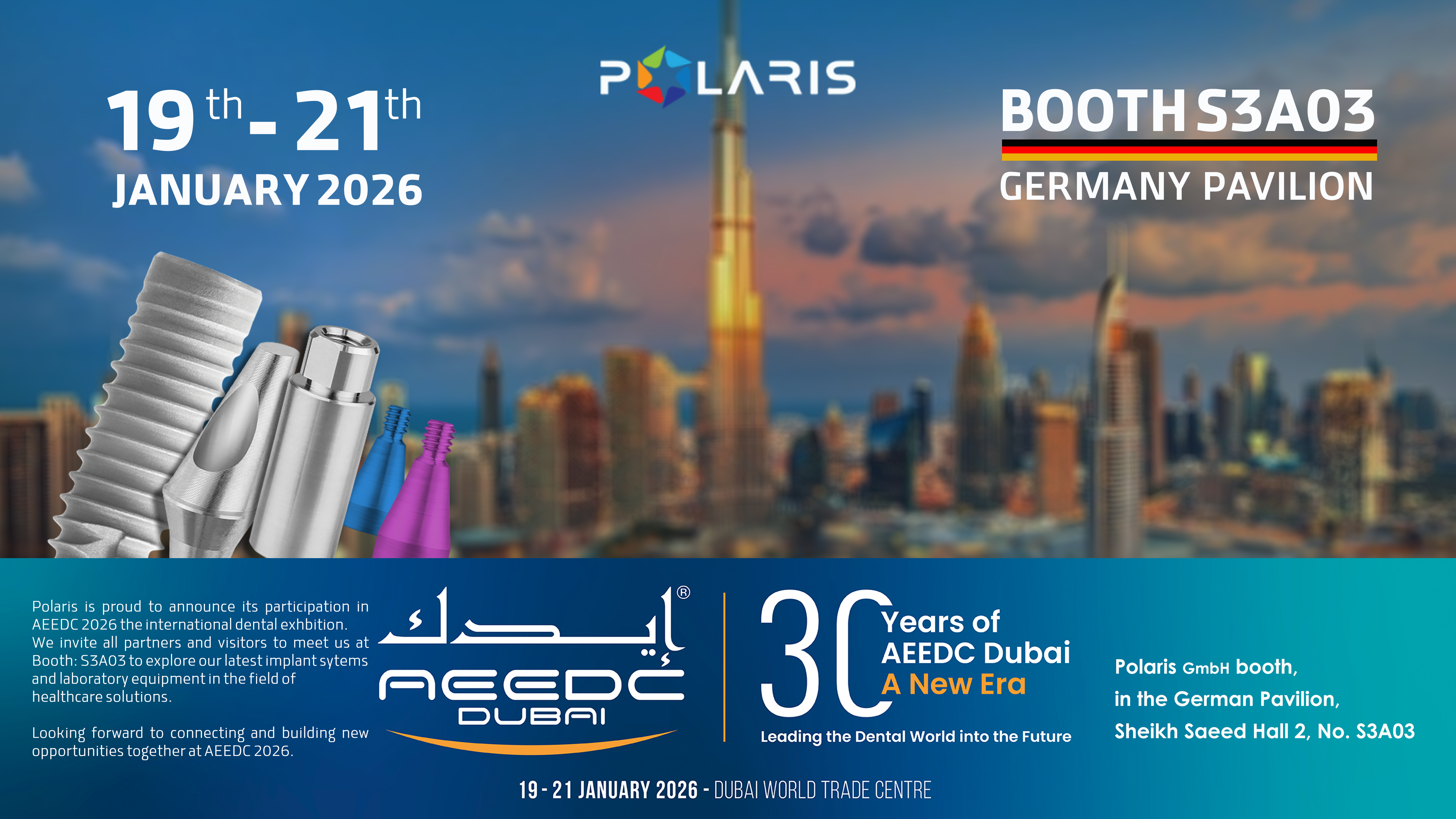 Polaris cordially welcomes you to: Dubai International Convention and Exhibition Centre, German Pavilion, Sheikh Saeed, Hall 2, No.: S3A03